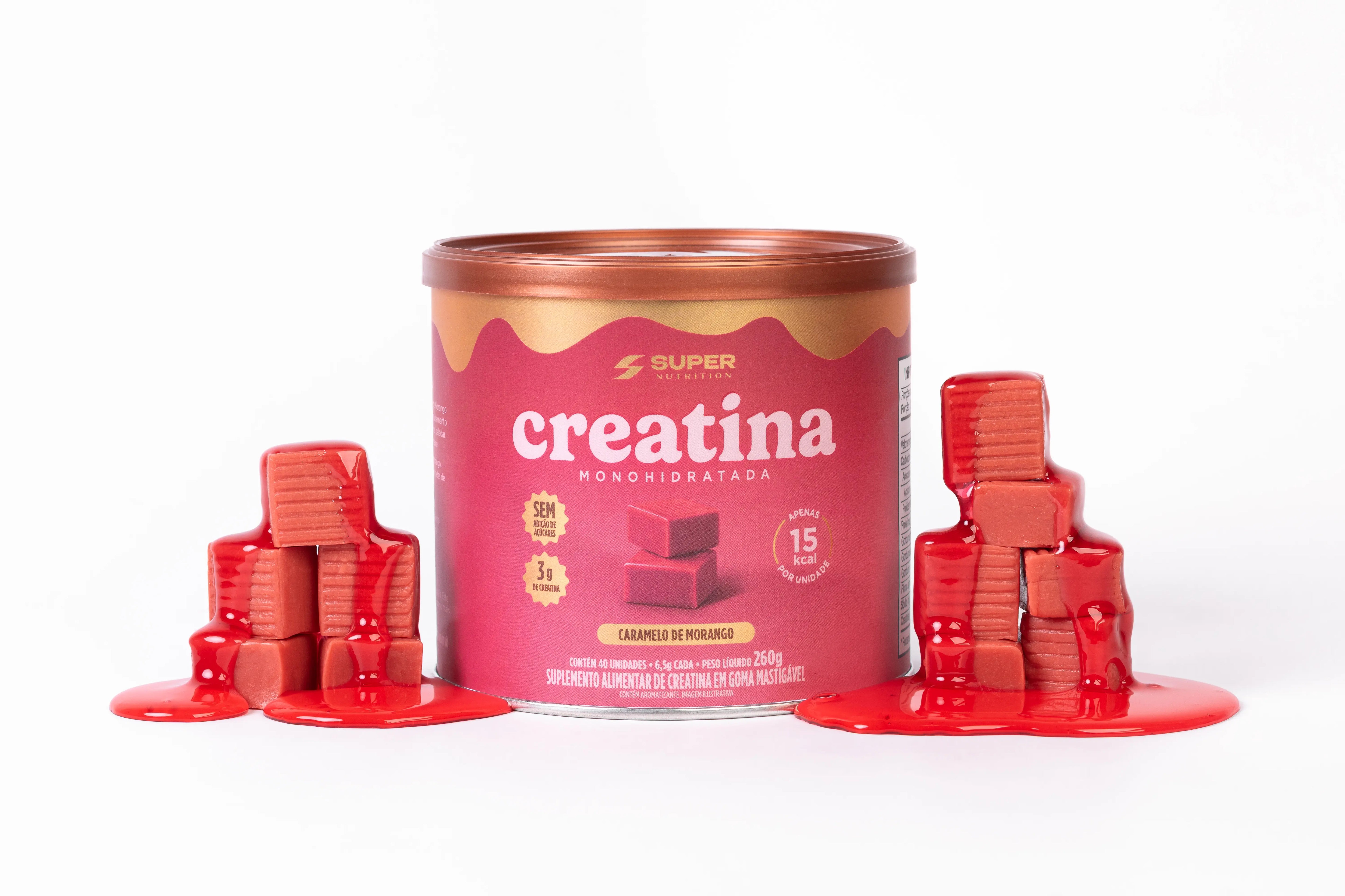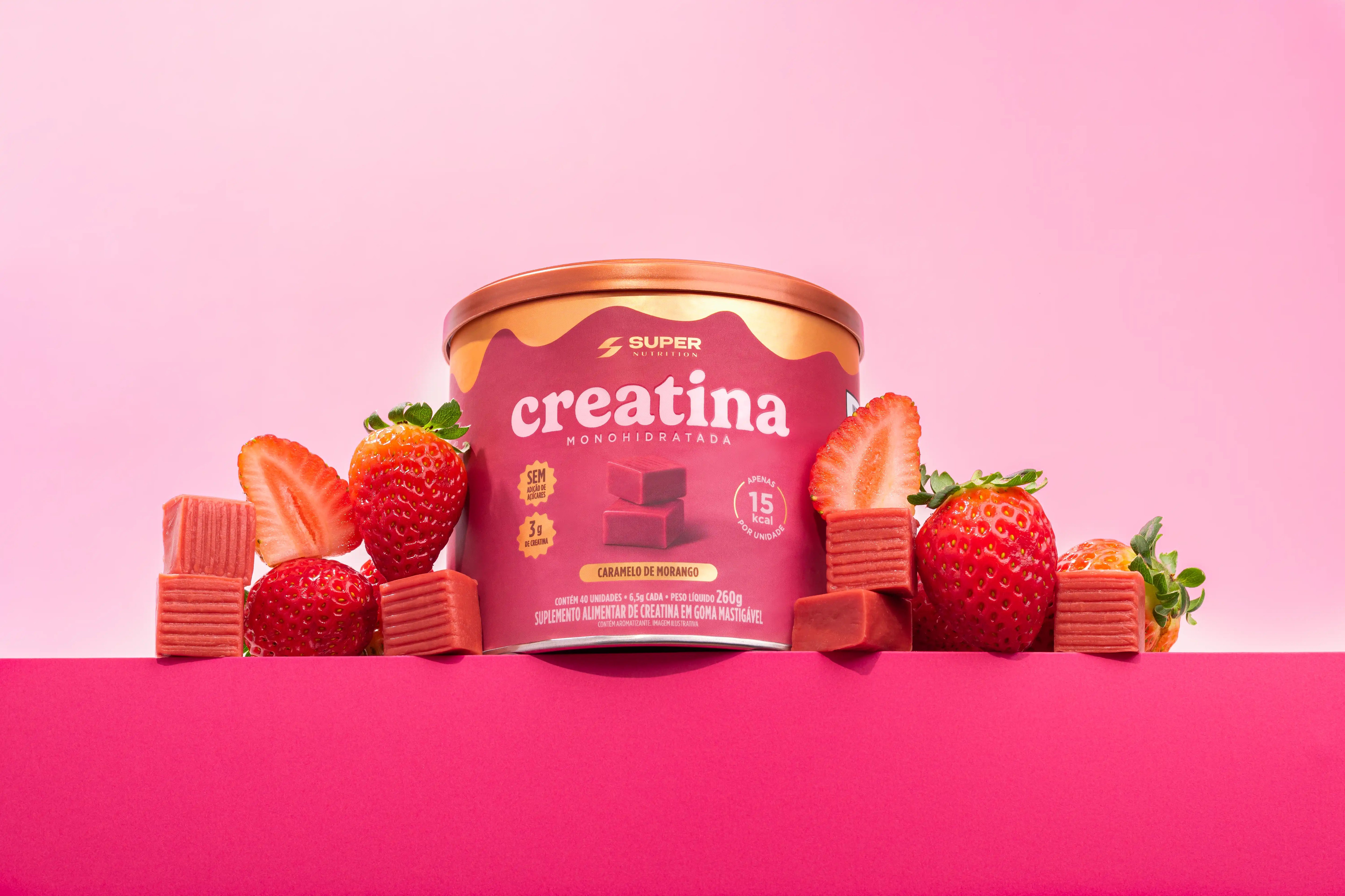 2 caramelos sabor morango diários = 3g de Creatina